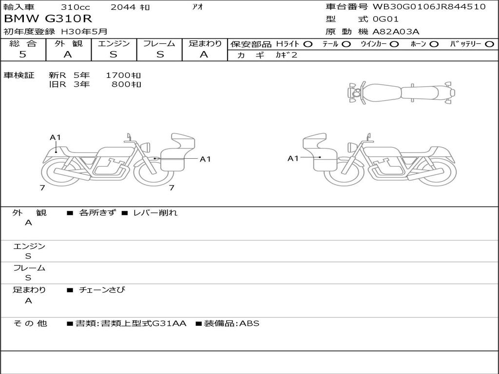 | Номер рамы / VIN | WB30G0106JR844510 |