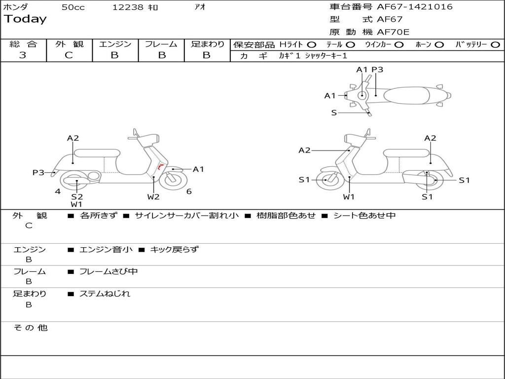 | Номер рамы / VIN | AF67-1421016 |