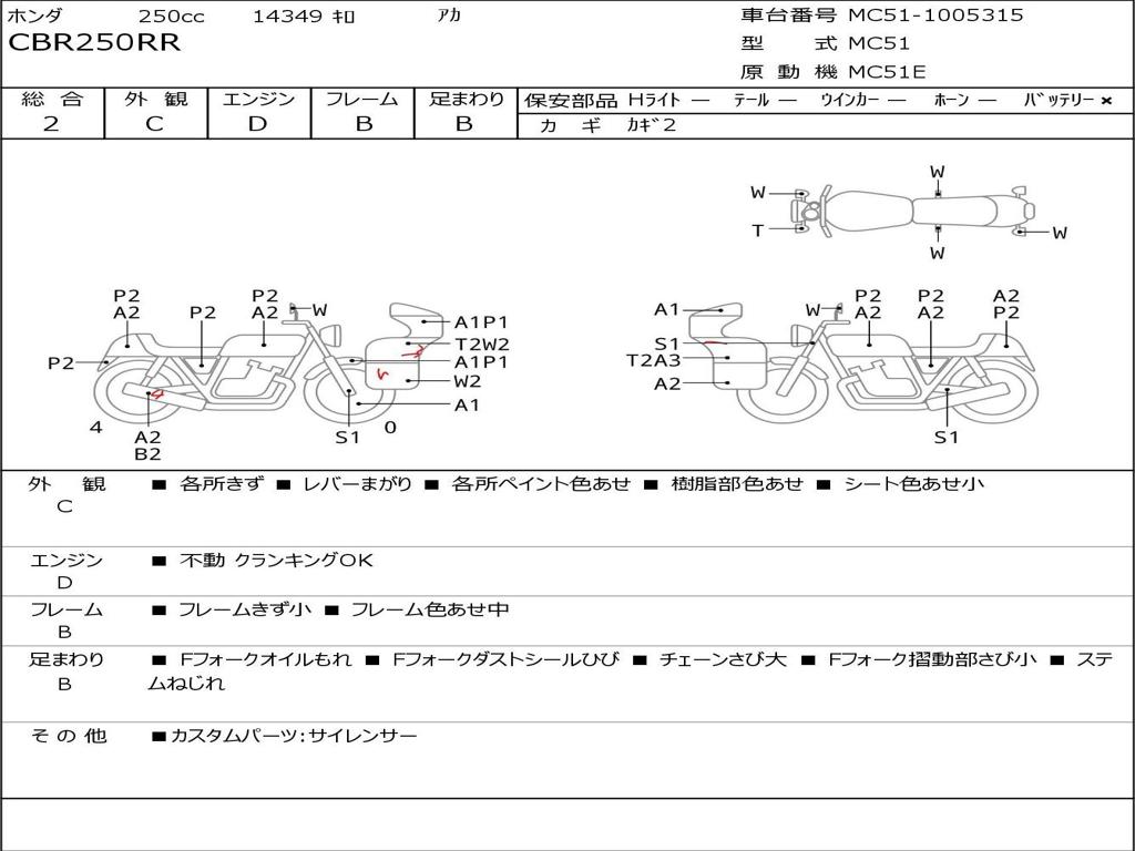 | Номер рамы / VIN | MC51-1005315 |
