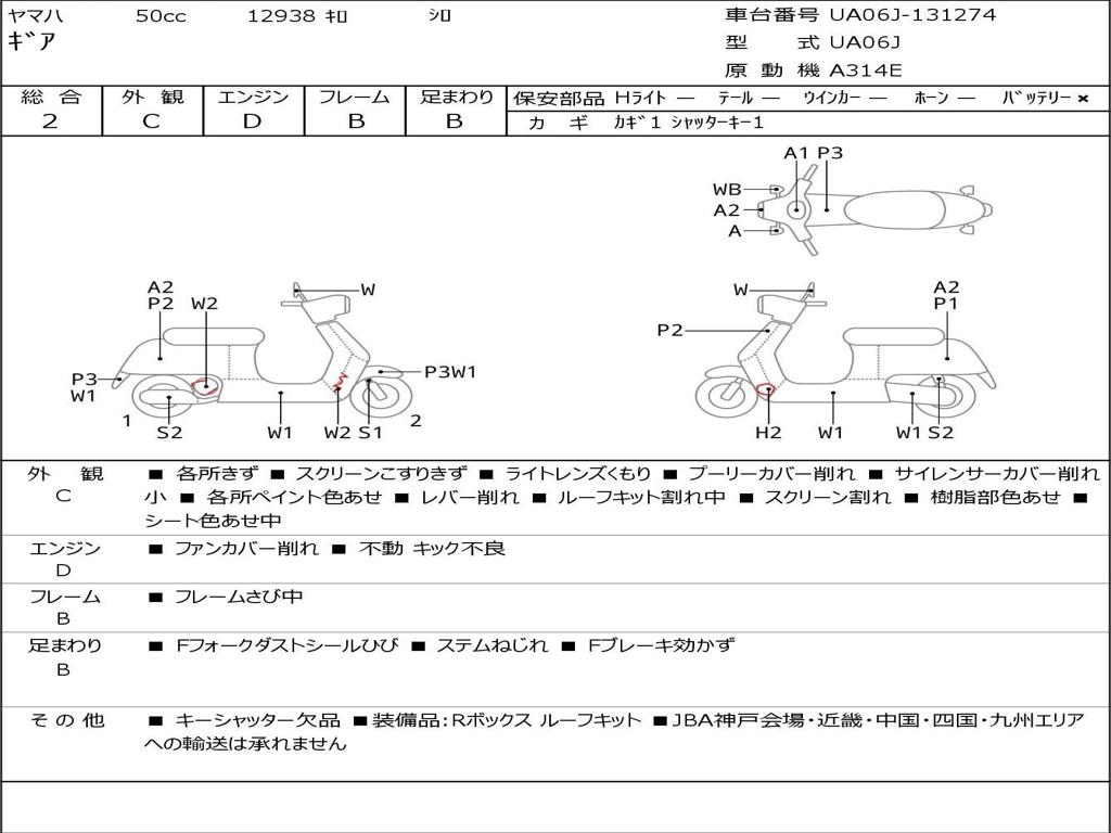 | Номер рамы / VIN | UA06J-131274 |