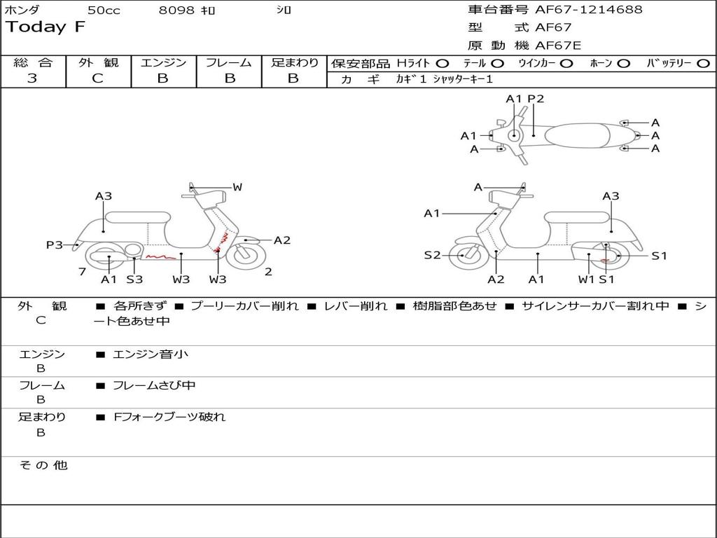 | Номер рамы / VIN | AF67-1214688 |
