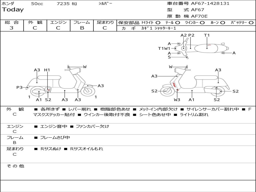 | Номер рамы / VIN | AF67-1428131 |