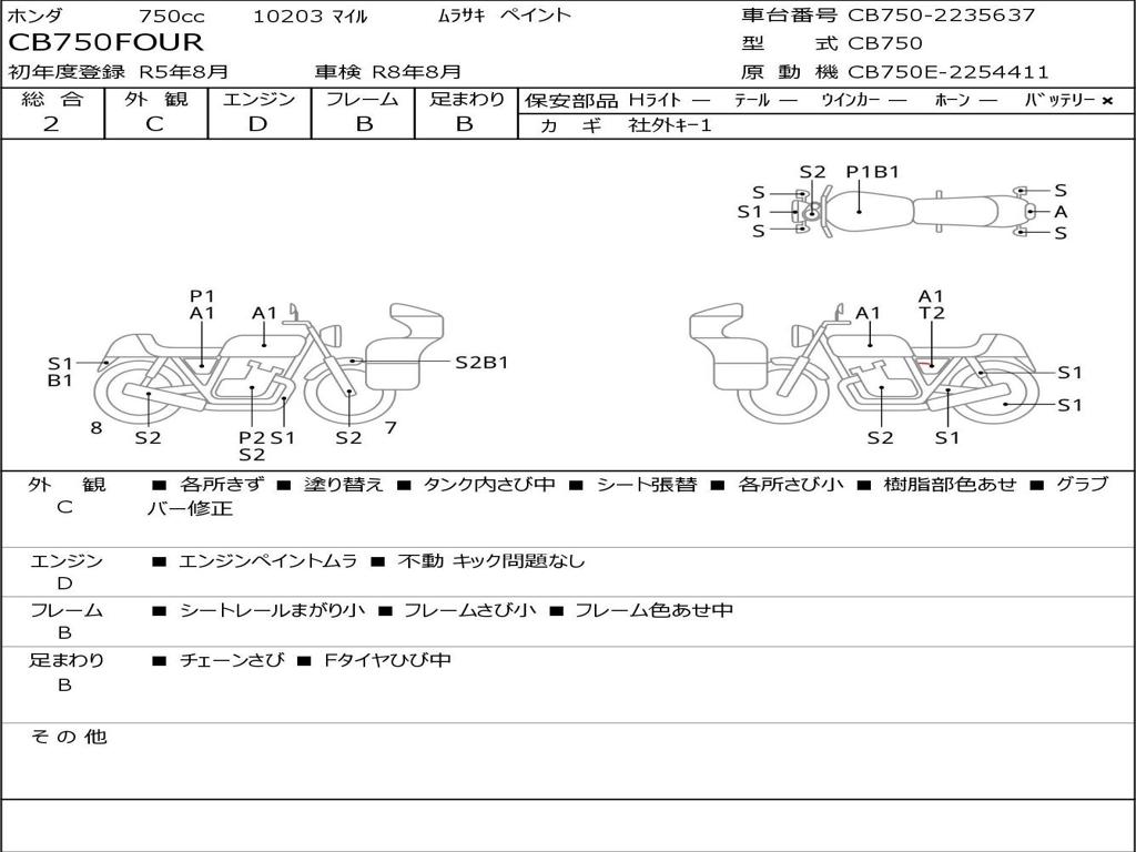| Номер рамы / VIN | CB750-2235637 |