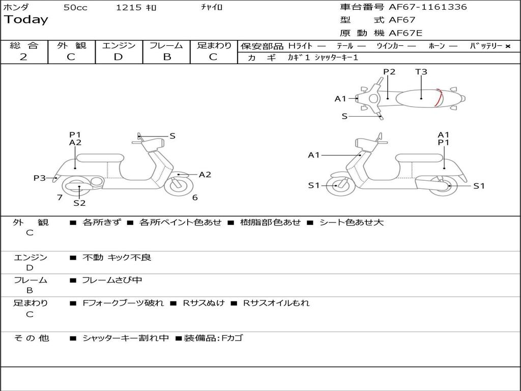 | Номер рамы / VIN | AF67-1161336 |