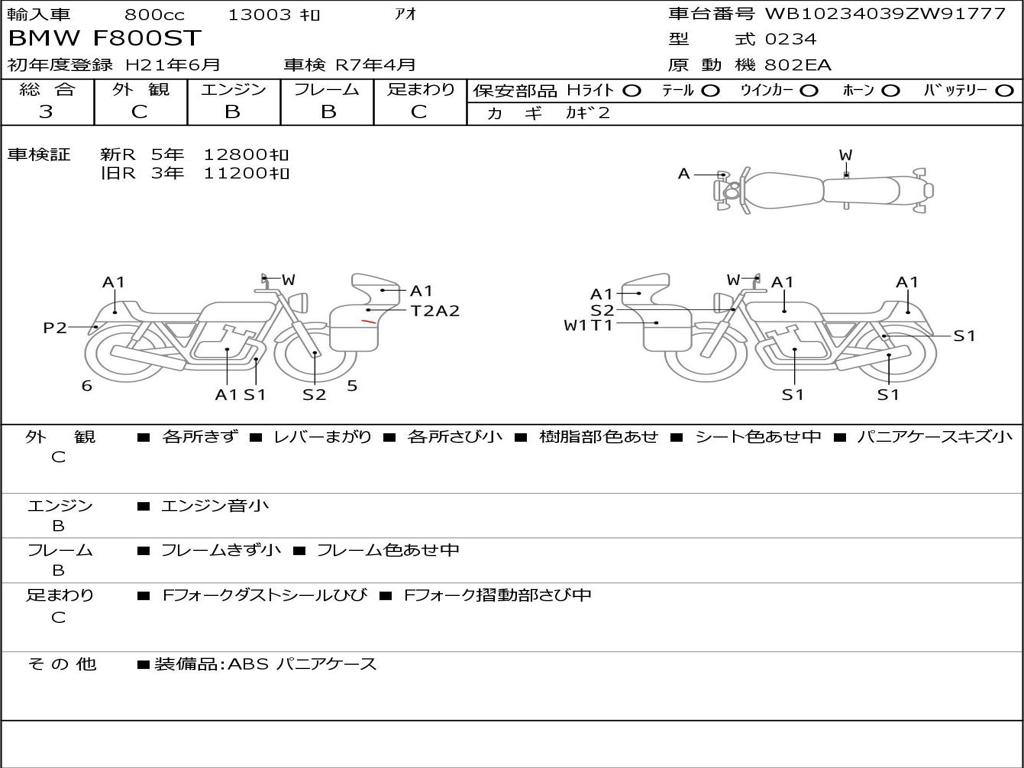 | Номер рамы / VIN | WB10234039ZW91777 |