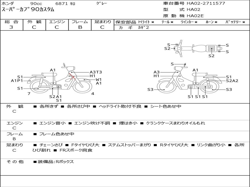 | Номер рамы / VIN | HA02-2711577 |
