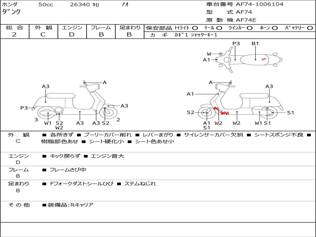 | Номер рамы / VIN | AF74-1006104 |