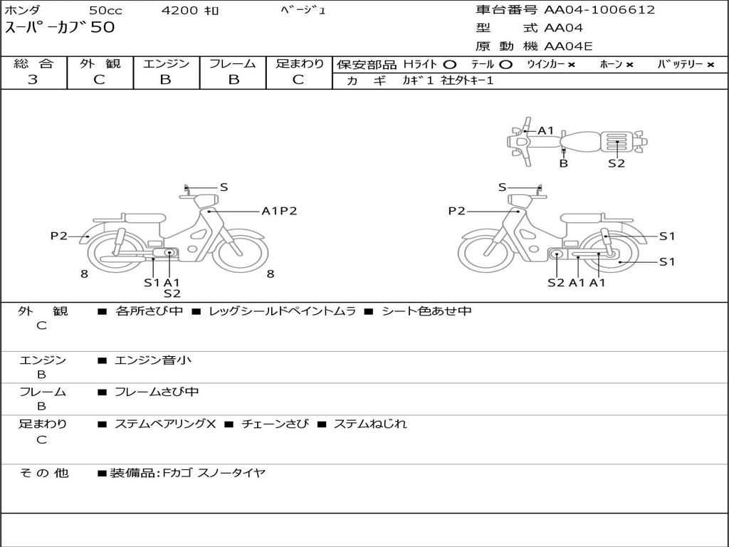 | Номер рамы / VIN | AA04-1006612 |