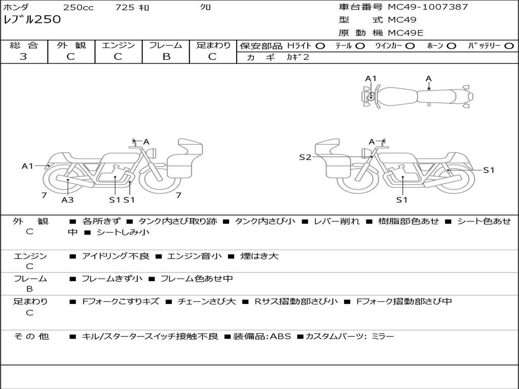 | Номер рамы / VIN | MC49-1007387 |