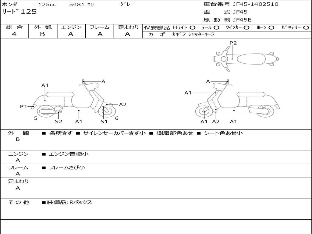 | Номер рамы / VIN | JF45-1402510 |