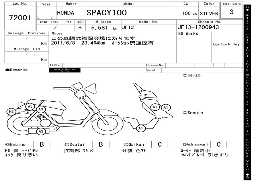 | Номер рамы / VIN | JF13-1200943 |
