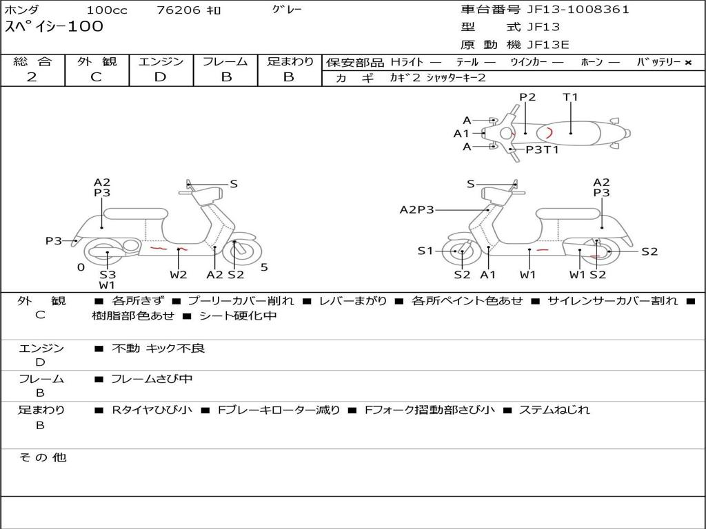 | Номер рамы / VIN | JF13-1008361 |