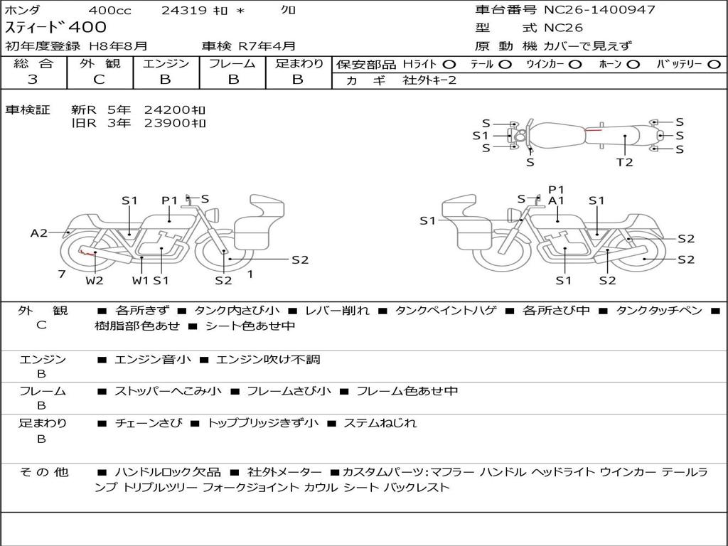 | Номер рамы / VIN | NC26-1400947 |