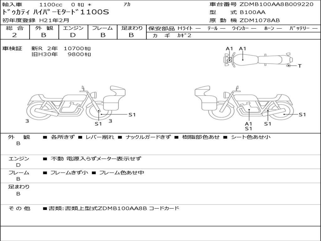 | Номер рамы / VIN | ZDMB100AA8B009220 |