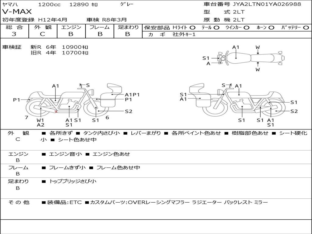 | Номер рамы / VIN | JYA2LTN01YA026988 |