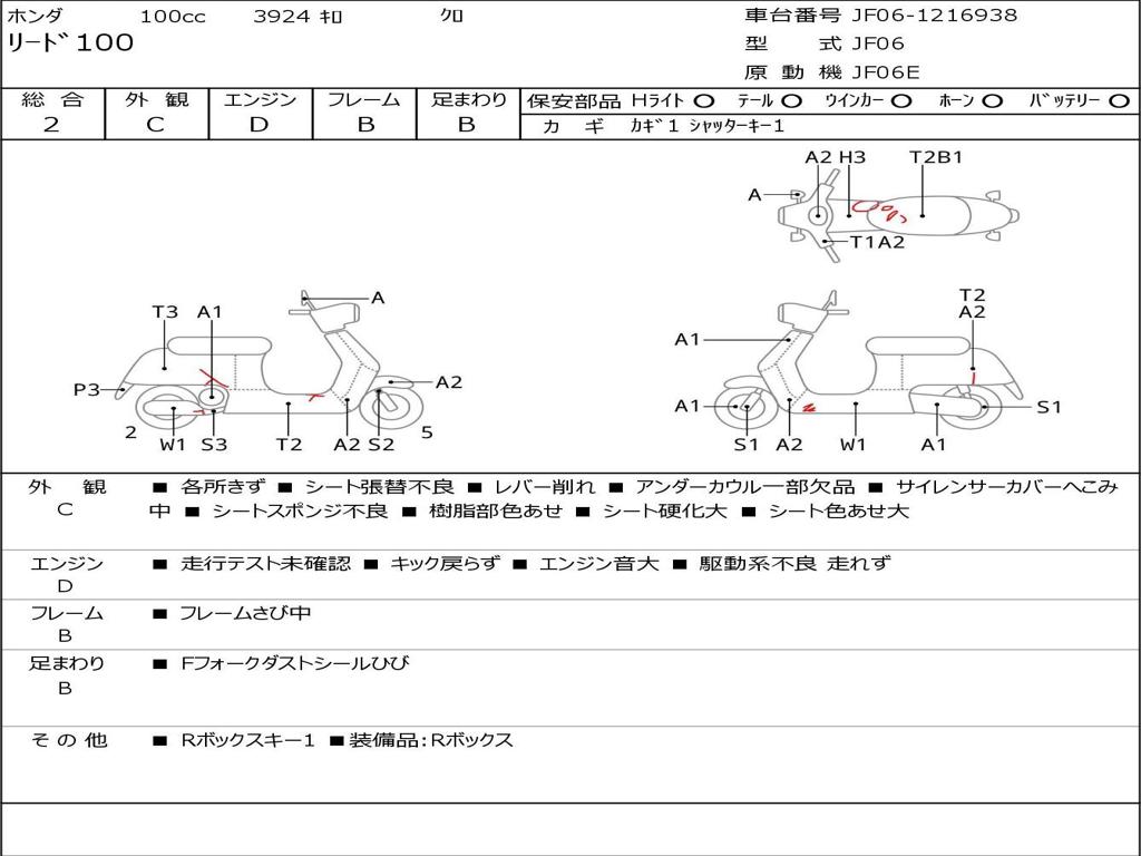 | Номер рамы / VIN | JF06-1216938 |