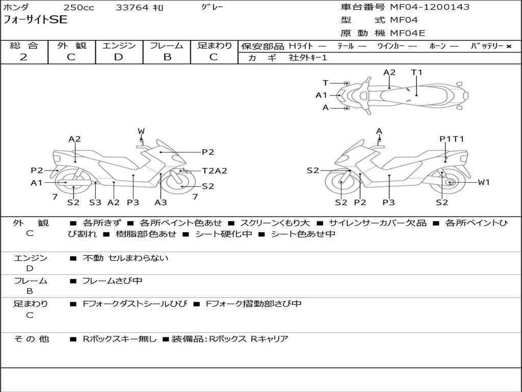 | Номер рамы / VIN | MF04-1200143 |