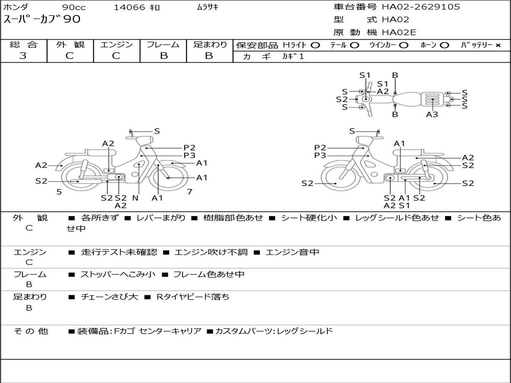| Номер рамы / VIN | HA02-2629105 |