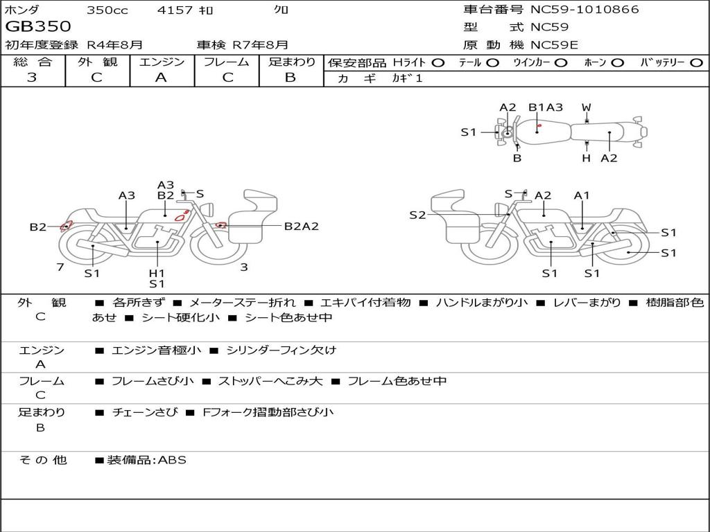 | Номер рамы / VIN | NC59-1010866 |
