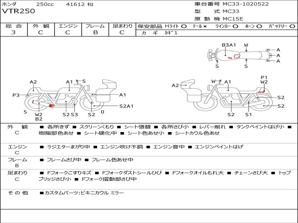 | Номер рамы / VIN | MC33-1020522 |