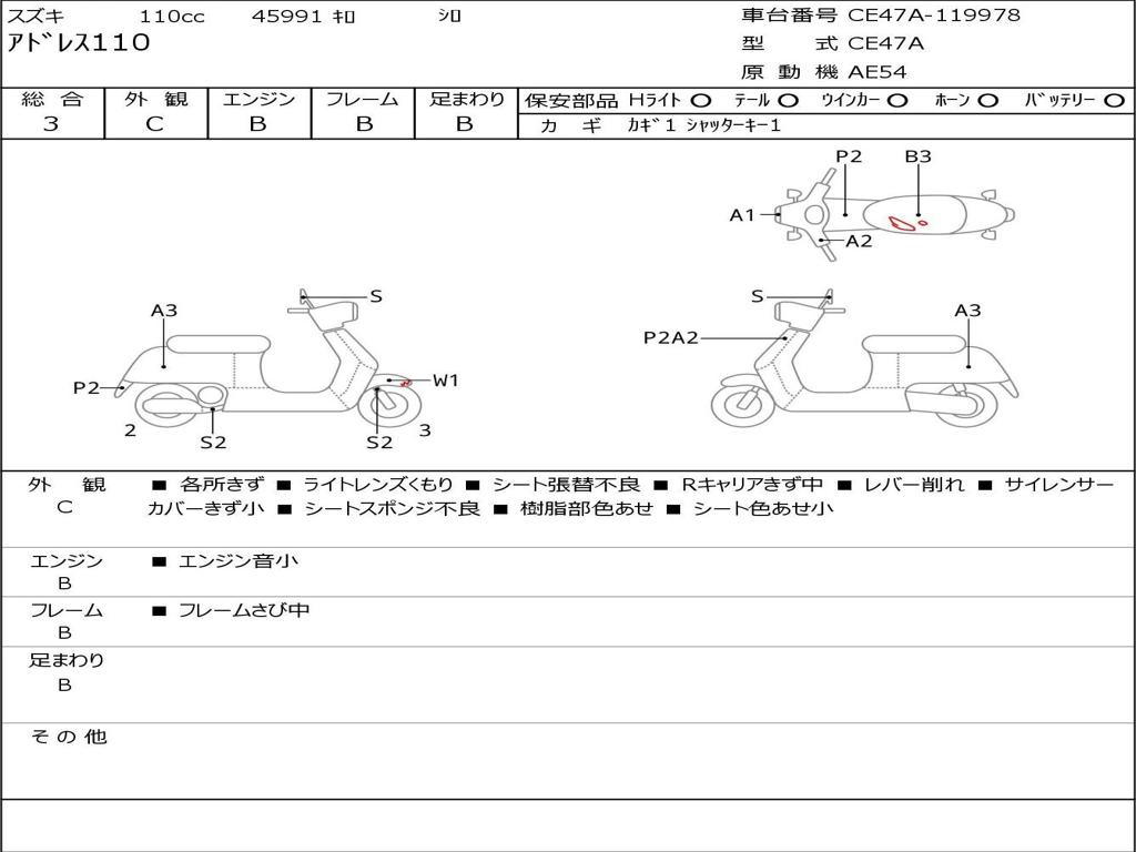 | Номер рамы / VIN | CE47A-119978 |