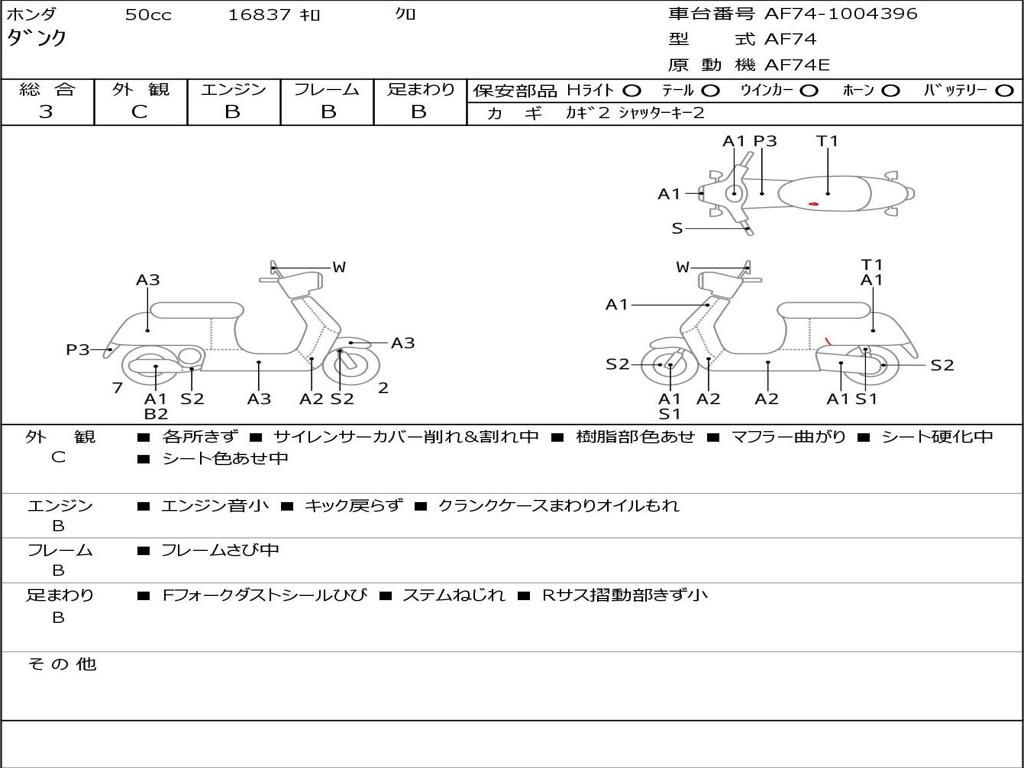 | Номер рамы / VIN | AF74-1004396 |