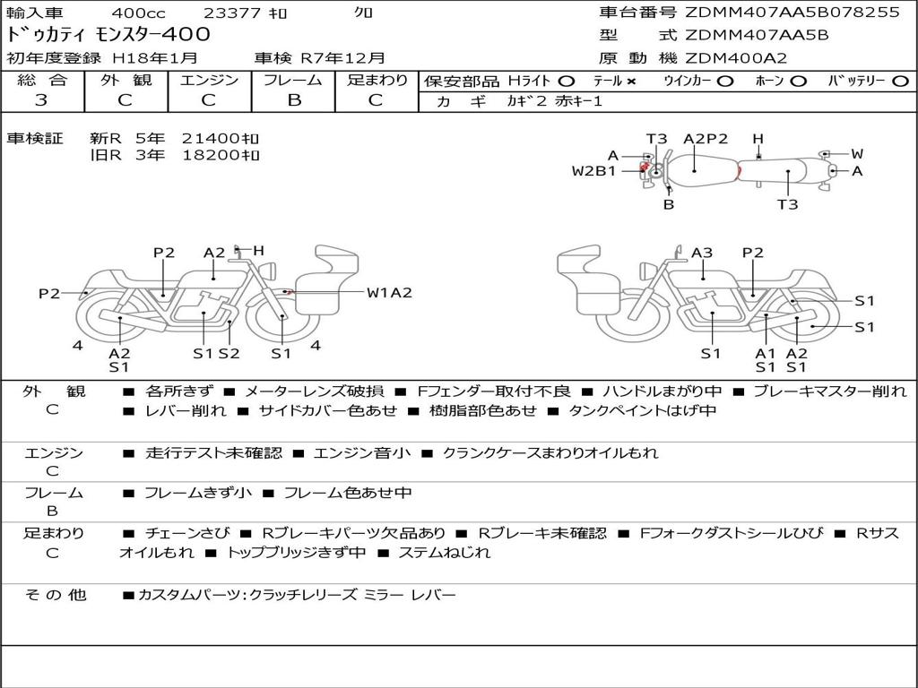 | Номер рамы / VIN | ZDMM407AA5B078255 |