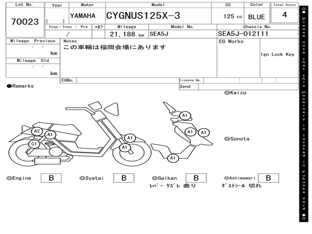 | Номер рамы / VIN | SEA5J-012111 |