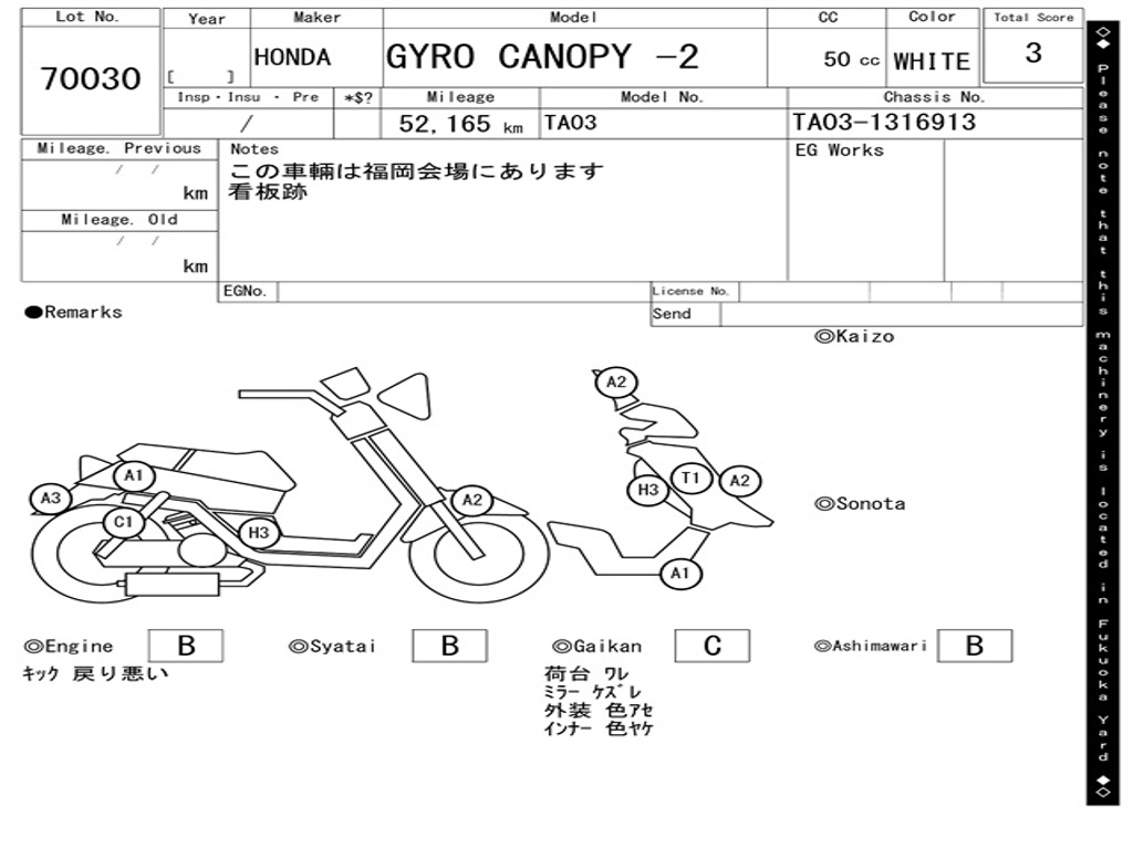 | Номер рамы / VIN | TA03-1316913 |