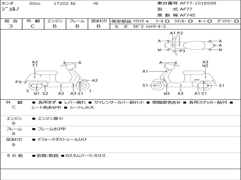 | Номер рамы / VIN | AF77-1018698 |