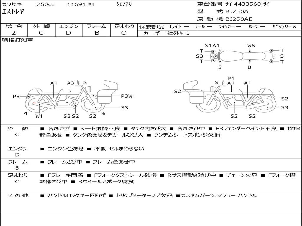 | Номер рамы / VIN | サイ4433560サイ |