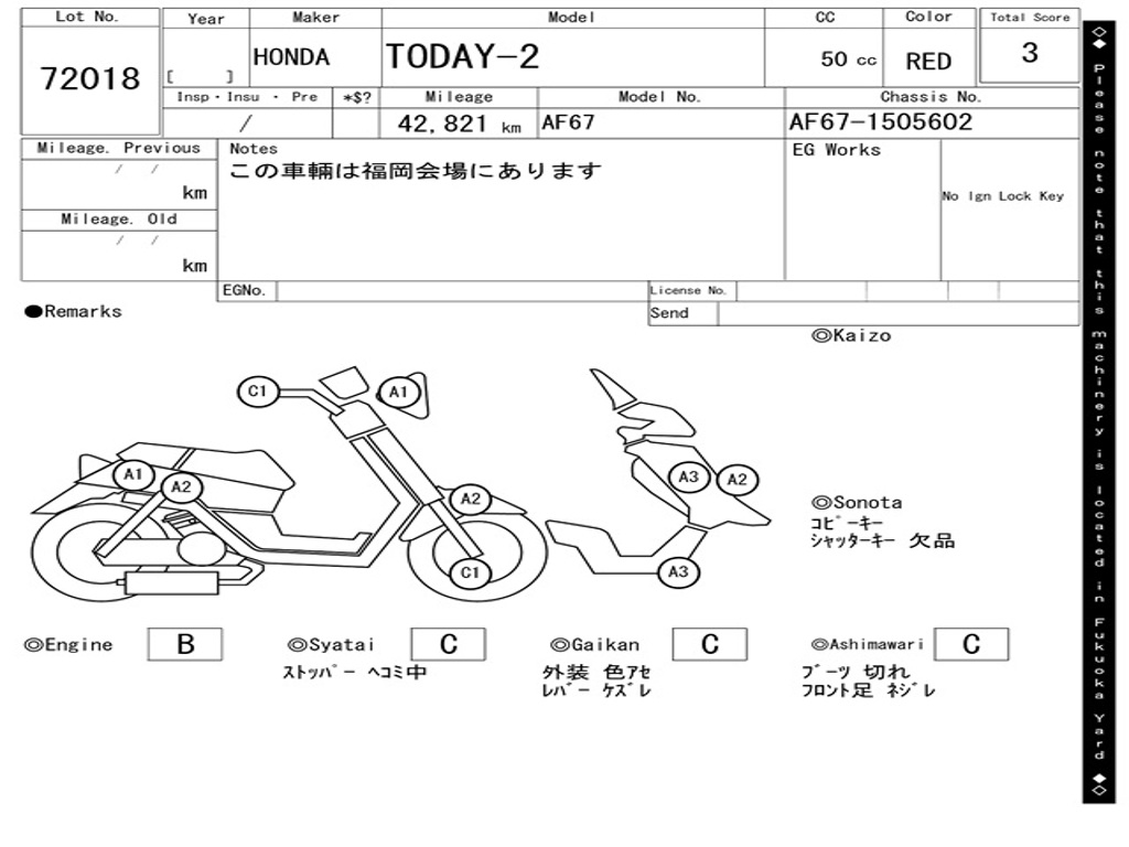 | Номер рамы / VIN | AF67-1505602 |