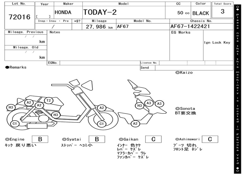 | Номер рамы / VIN | AF67-1422421 |