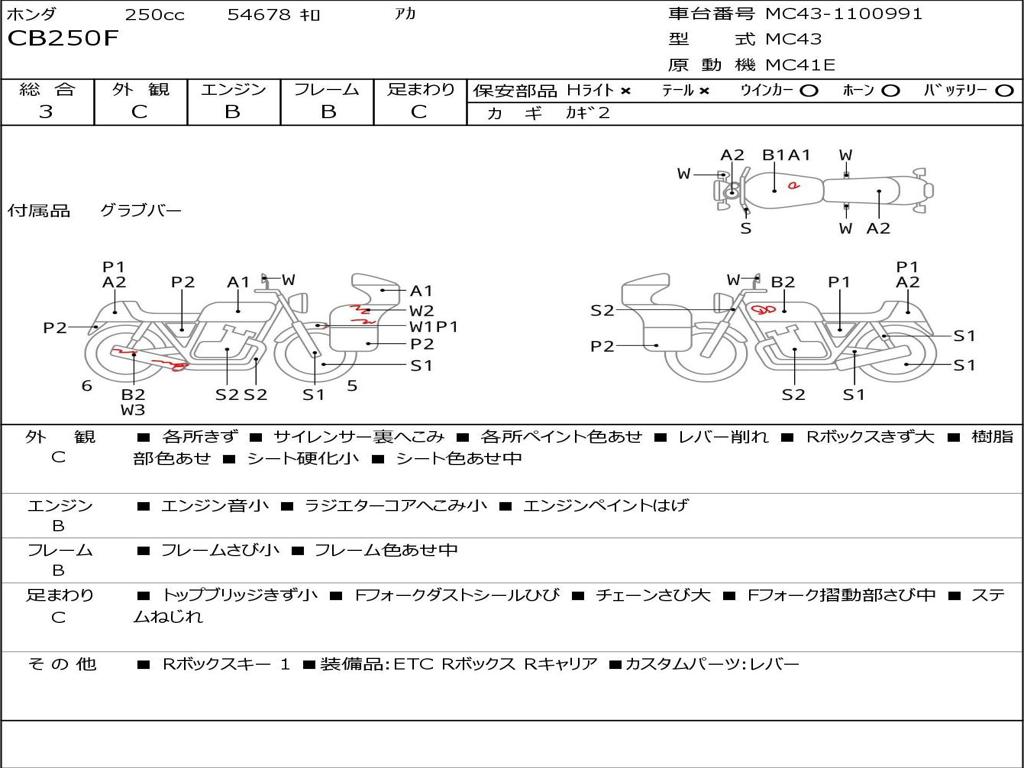| Номер рамы / VIN | MC43-1100991 |