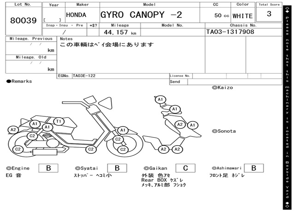 | Аукцион | ARAI BAYSIDE |