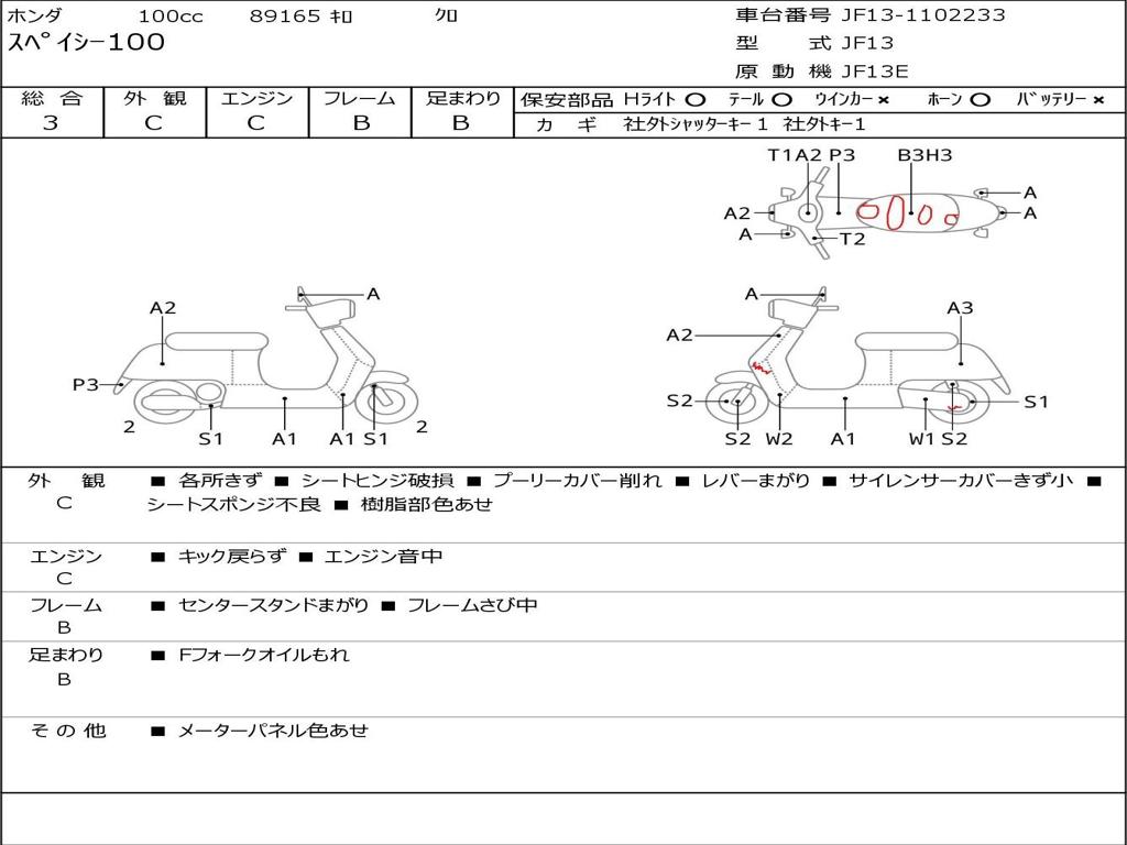| Номер рамы / VIN | JF13-1102233 |