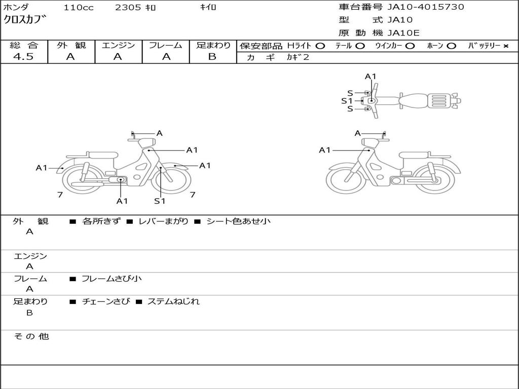 | Номер рамы / VIN | JA10-4015730 |