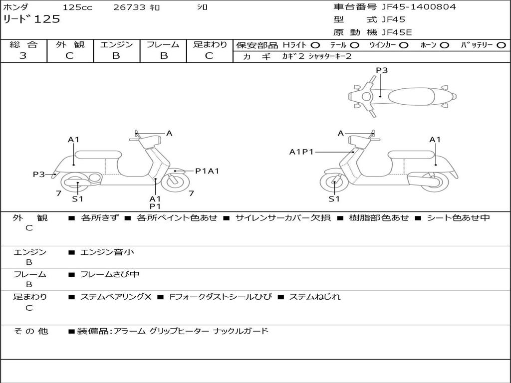 | Номер рамы / VIN | JF45-1400804 |