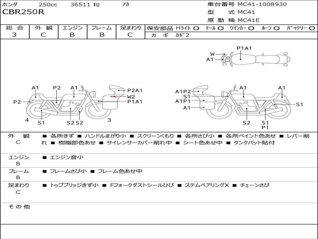 | Номер рамы / VIN | MC41-1008930 |