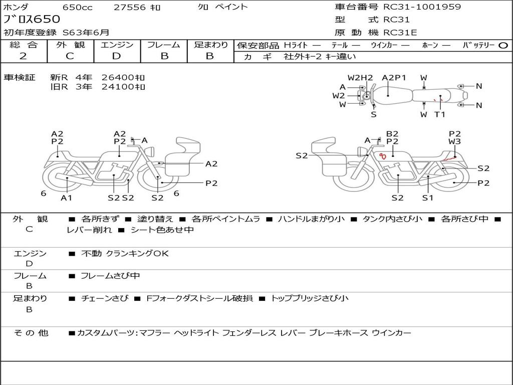 | Номер рамы / VIN | RC31-1001959 |