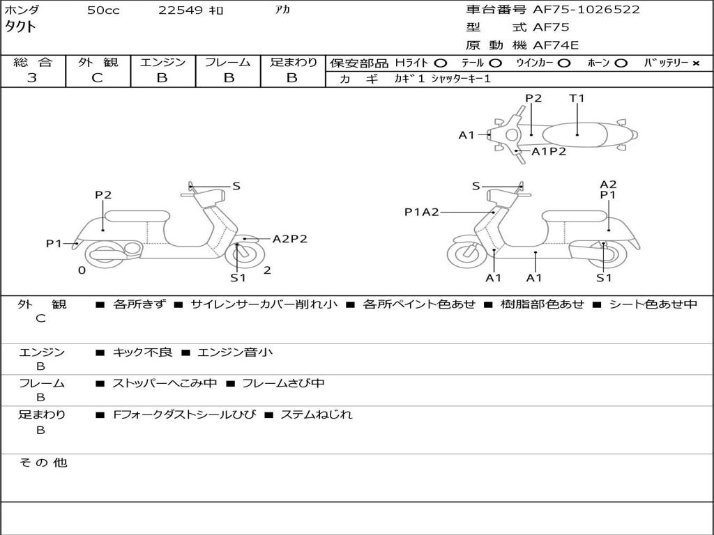 | Номер рамы / VIN | AF75-1026522 |