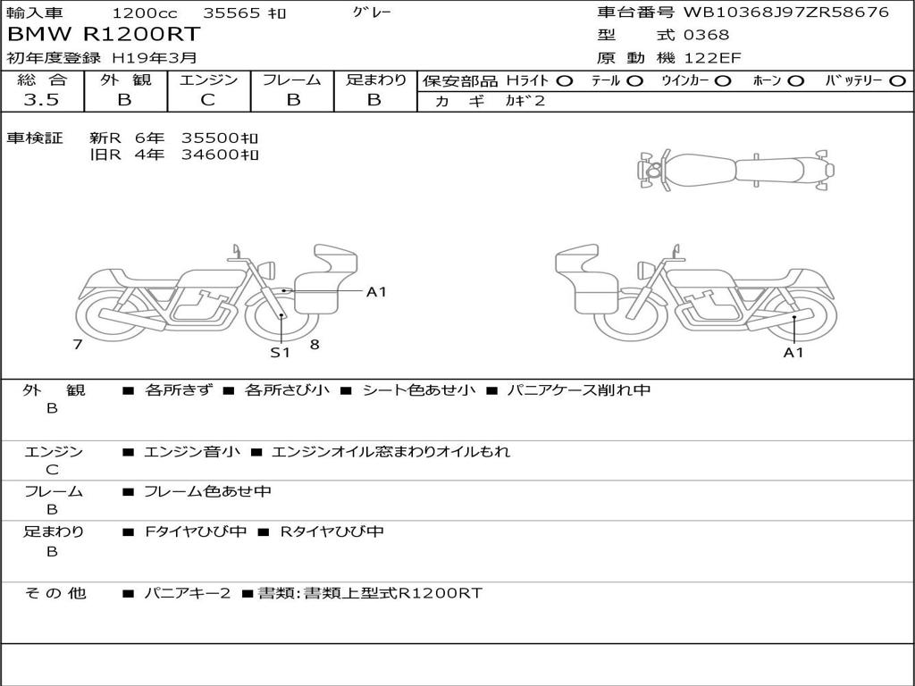 | Номер рамы / VIN | WB10368J97ZR58676 |