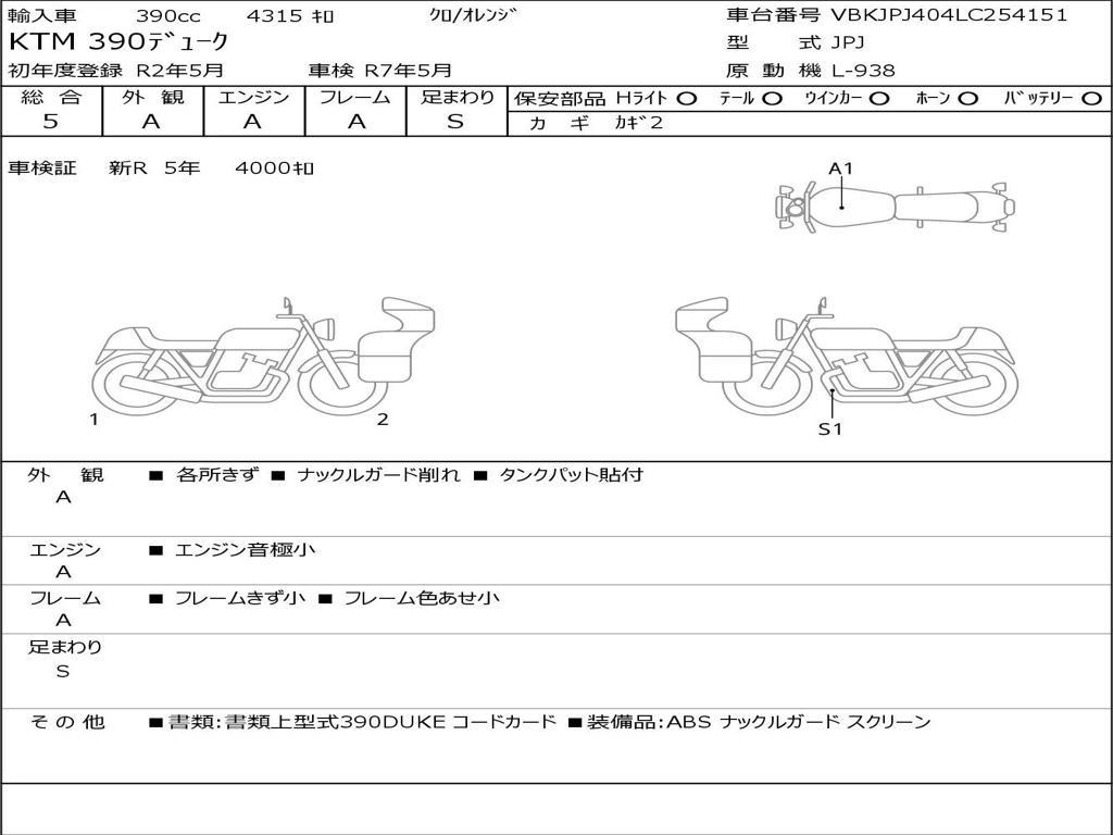 | Номер рамы / VIN | VBKJPJ404LC254151 |