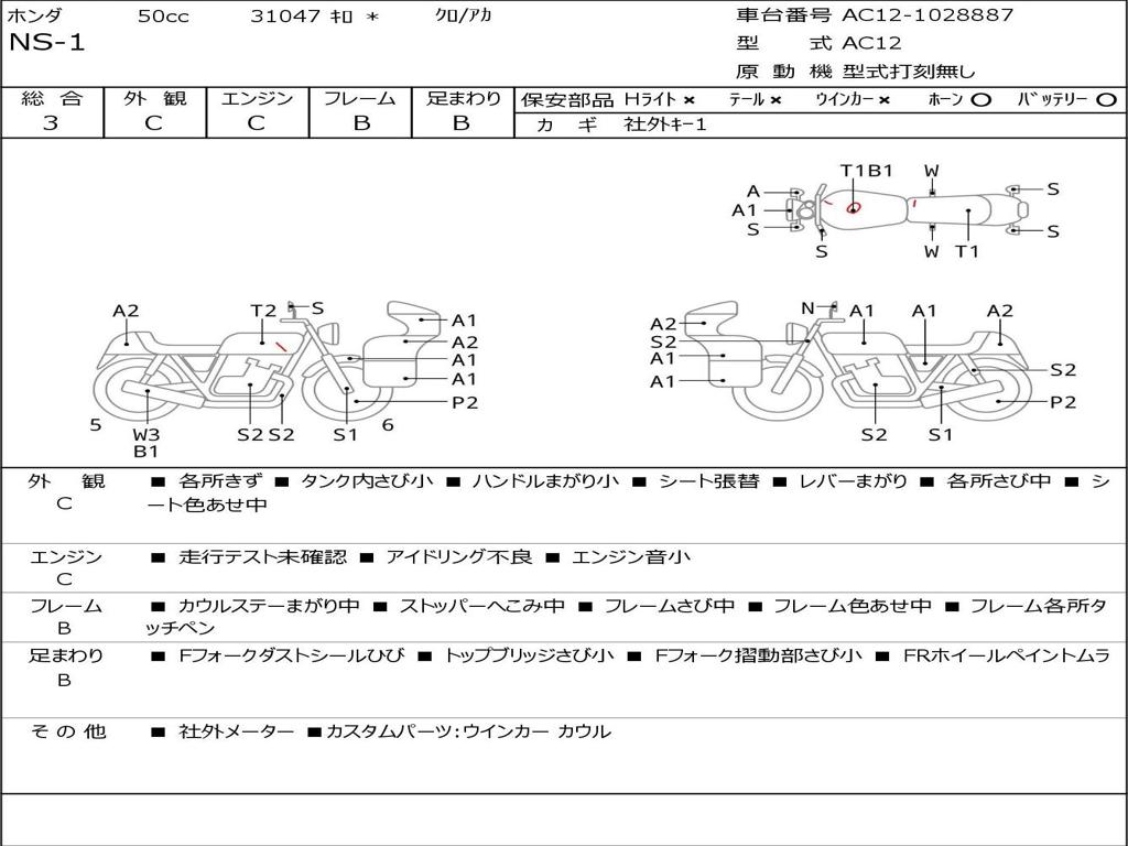 | Номер рамы / VIN | AC12-1028887 |