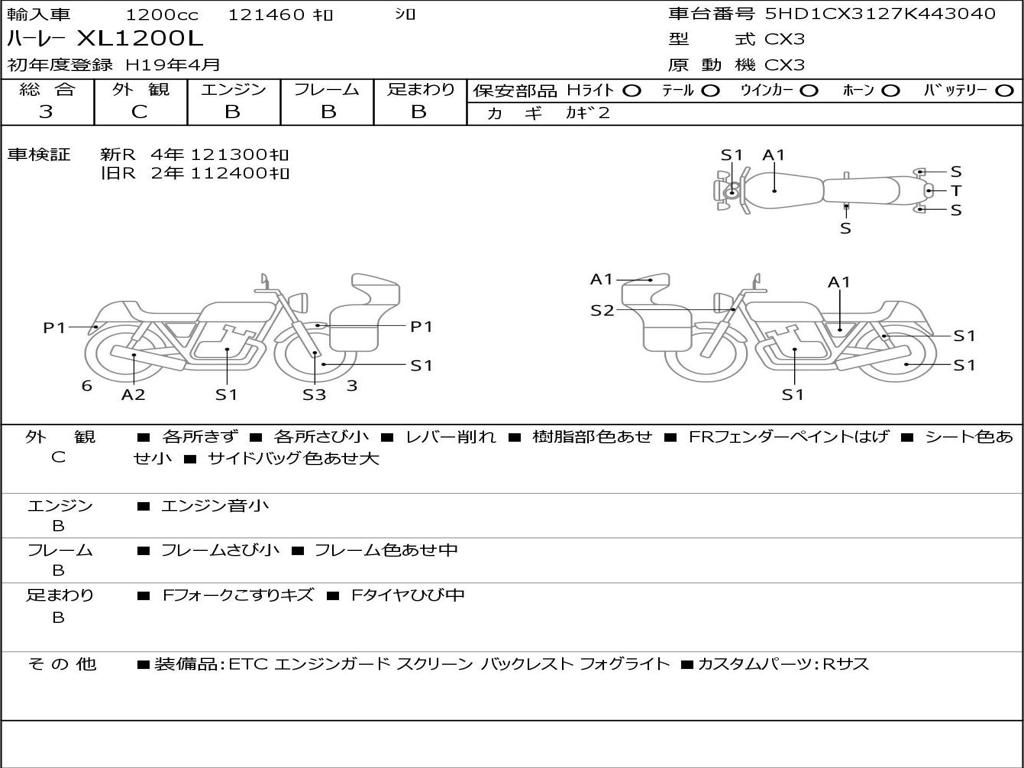 | Номер рамы / VIN | 5HD1CX3127K443040 |
