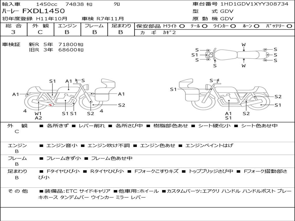 | Номер рамы / VIN | 1HD1GDV1XYY308734 |