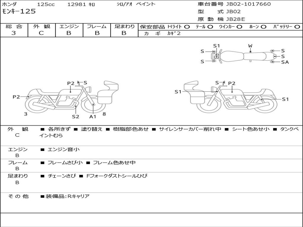 | Номер рамы / VIN | JB02-1017660 |