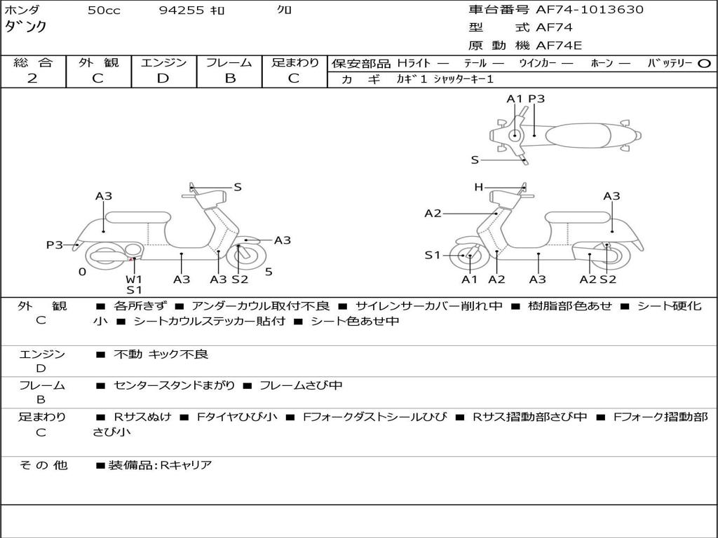 | Номер рамы / VIN | AF74-1013630 |