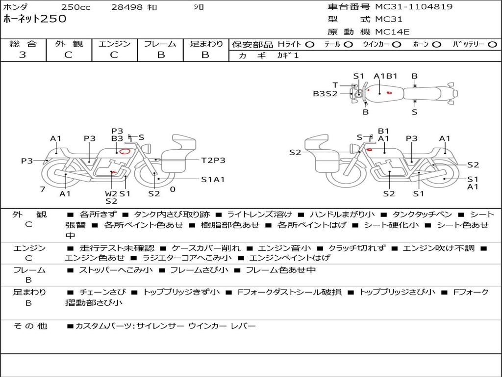 | Номер рамы / VIN | MC31-1104819 |
