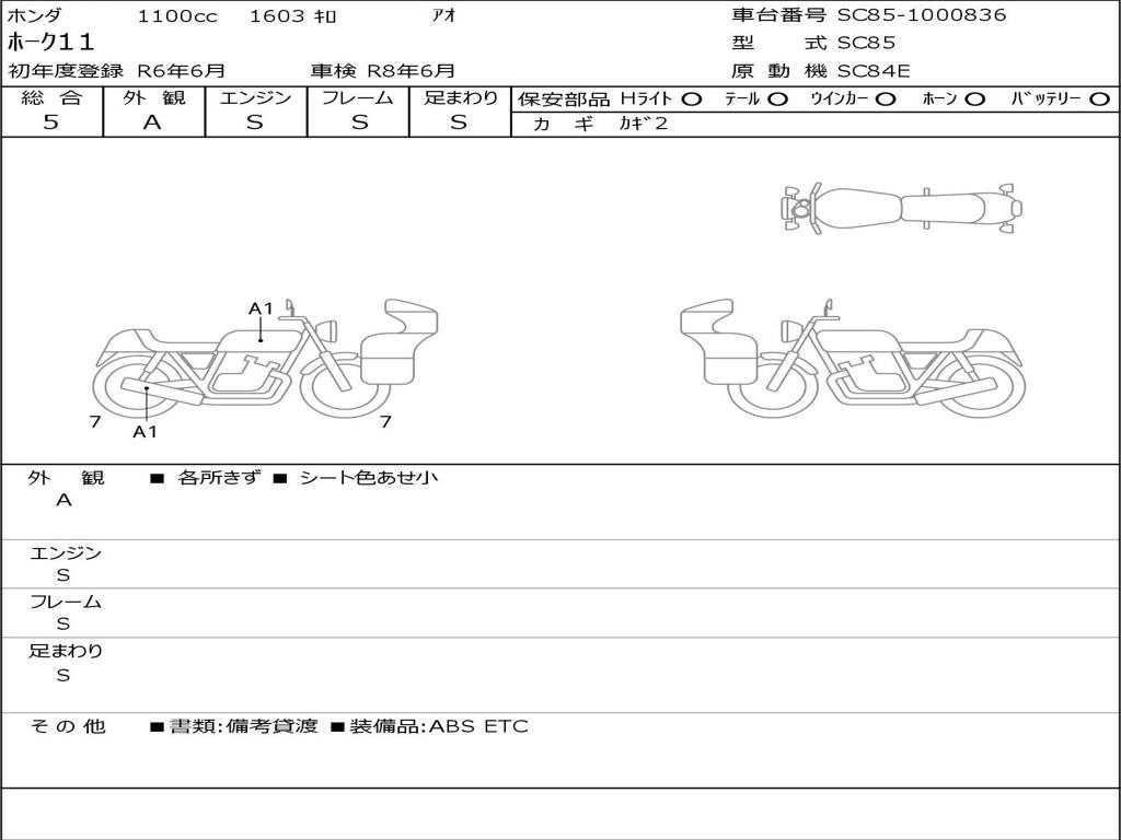 | Номер рамы / VIN | SC85-1000836 |